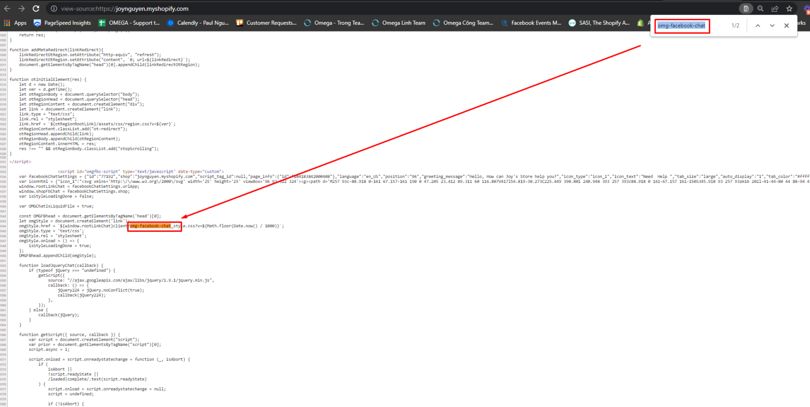 Step 1: Go to the website and right-click -> View Source -> Ctrl+F to search for omg-facebook-chat
