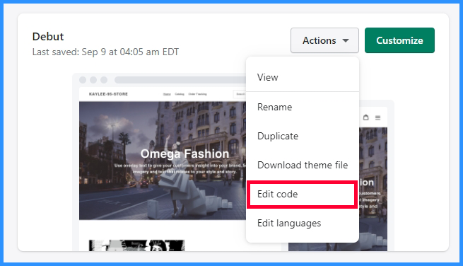 Step 3: Select Actions => Edit code